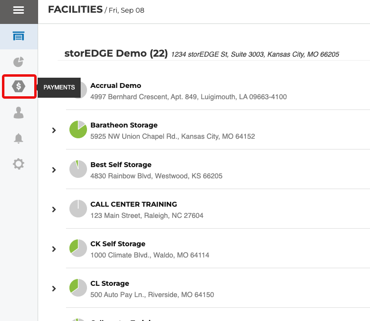 Click the Payments icon from the navigation menu at the Corporate Level of Edge.