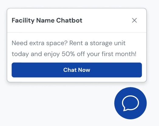 Customers can filter units by amenities and price by clicking the Filters button. The rates and promotions shown in the chatbot will be the same as those on your website unless you change them. To assign different rates or promotions to the chatbot, assign the Storable Chat channel to the rate or promotion you want to display in the chatbot. See our resources below for more information: