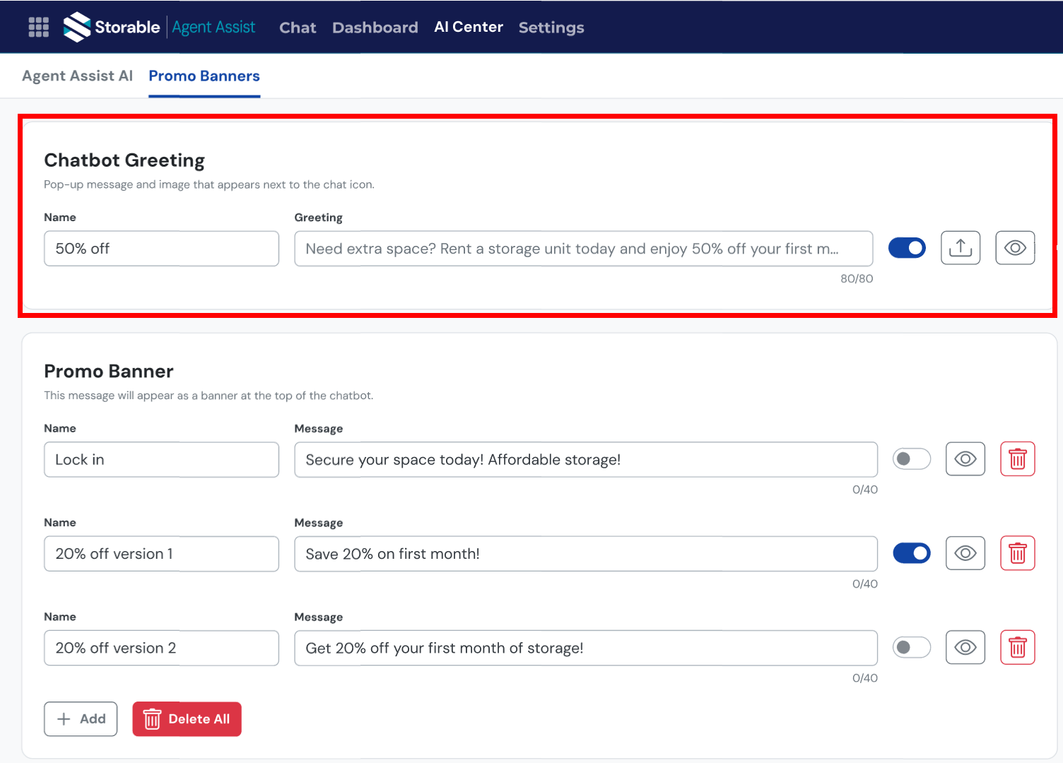 - Click on the AI Center page and then click on the Promo Banners tab.