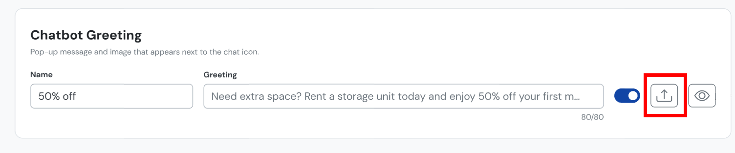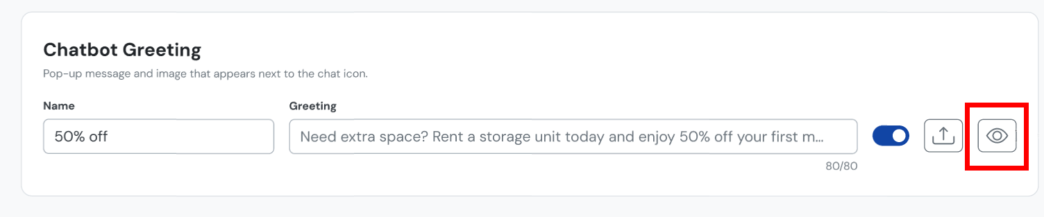 A flyer is displayed above the chatbot icon to draw attention to the chatbot and increase chat traffic. The flyer is only shown to website visitors once every 24 hours. If the visitor has seen the chatbot and returns to your website within 24 hours, they will only see the chat icon.