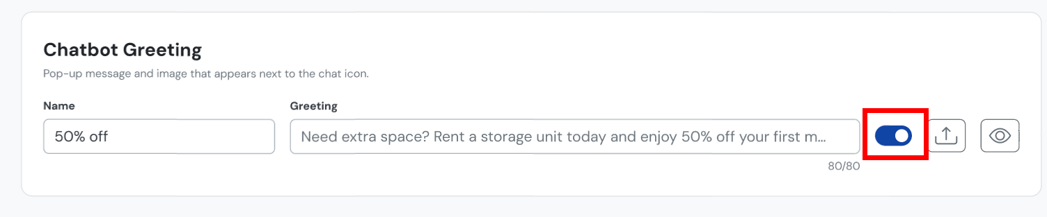 - In the Chatbot Greeting section, enter a name for the greeting in the Name field. This name will not be shown externally to customers.