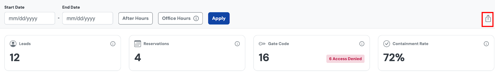 To export data from this page, select a start and end date and click Apply. A date range must be selected to export the data.