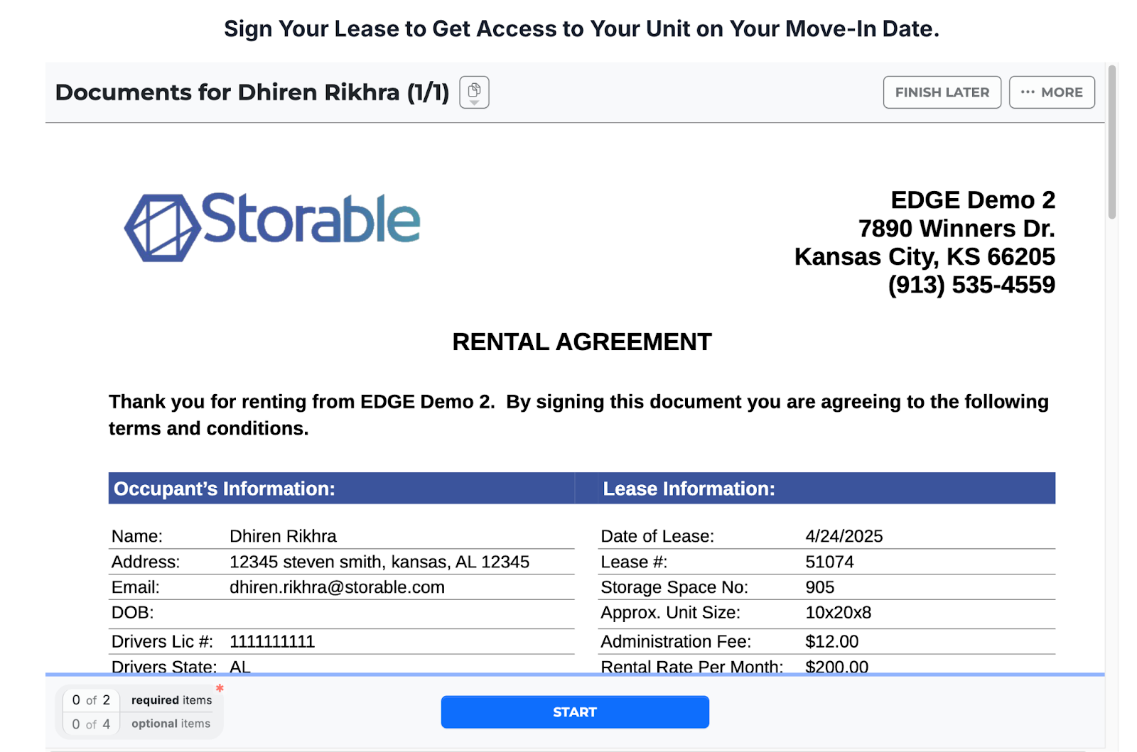 The following aspects of the online move-in flow can be changed. If you would like to make changes, please contact our Support Team at edgesupport@storable.com.