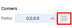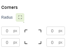 - Corners - The radius in pixels for rounding the corners for the Layout or Element. You can modify each corner’s radius individually by clicking the corners icon.