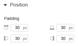 Container padding can be edited by entering the number of pixels that should be included as padding on the top, bottom, left, and right sides of the container.