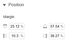 Element margins can be edited by entering the number of pixels that should be included as margins on the element's top, bottom, left, and right sides.