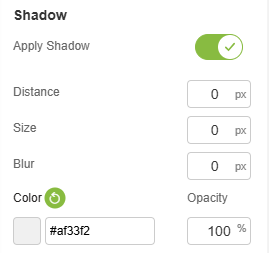 Shadow - If the Apply Shadow toggle is enabled, the Layout or Element will include a shadow. You can control the distance (in pixels), size (in pixels), blur (in pixels), color (solid, theme, or gradient), and opacity (percentage).