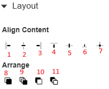 The Layout section allows you to align and arrange content. For containers, you can determine how overflowed content will be handled. The align and arrange options are defined below: