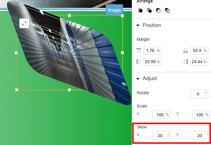 Skew - Enter a percentage along the X and Y axis to skew the element.