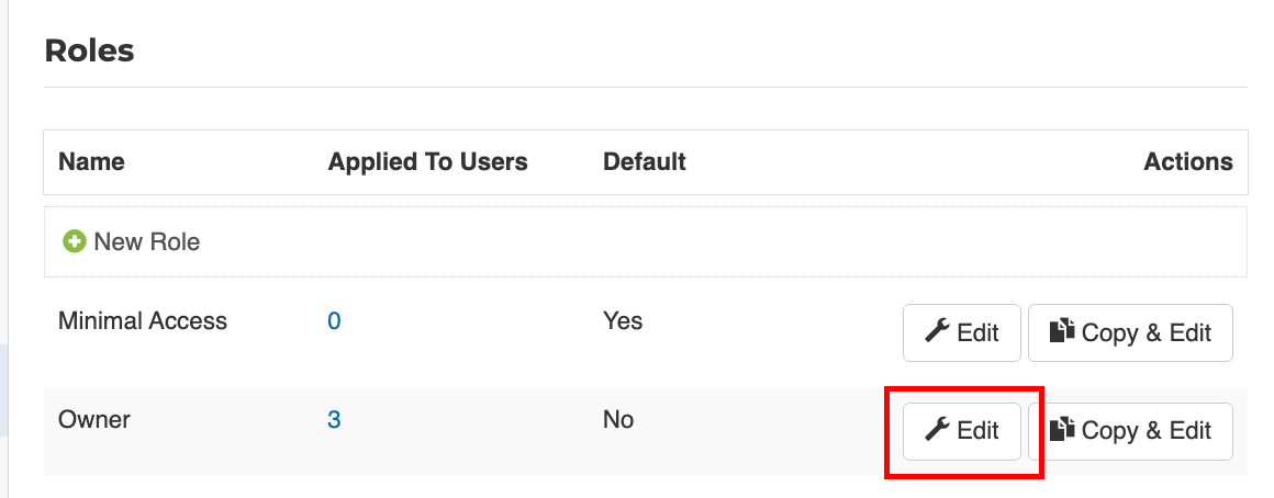 5. Click Update Role in the bottom right corner of the page to save changes. |