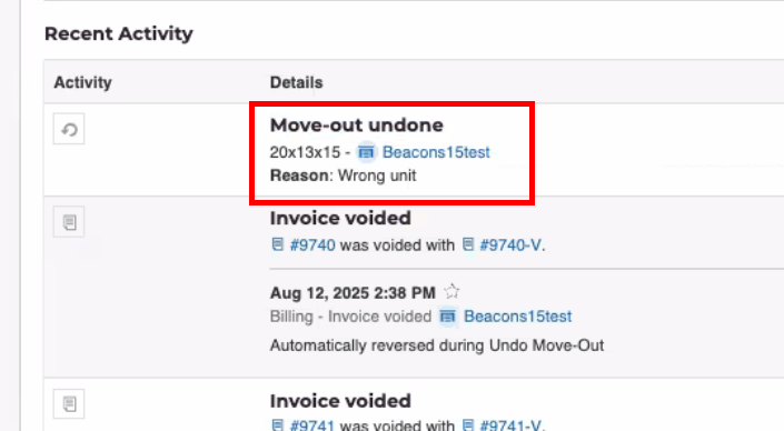 If Undo Move-Outs is enabled for your facility and Role, you can undo a move-out within the same day that it took place (up to 11:59 p.m. in the facility’s time zone).