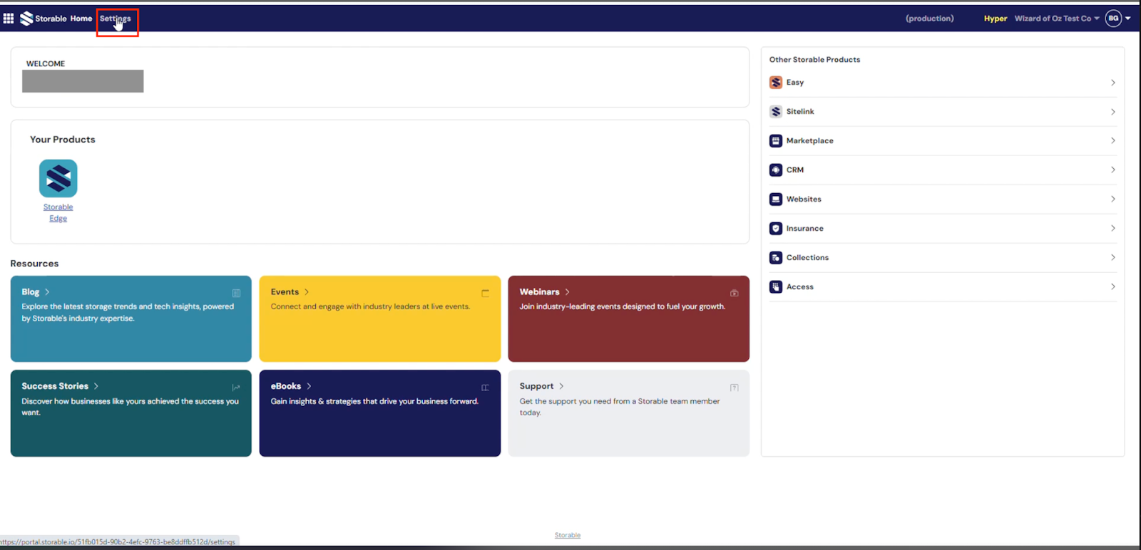 Once you’re signed in, you’ll land on the Storable ID Portal homepage.