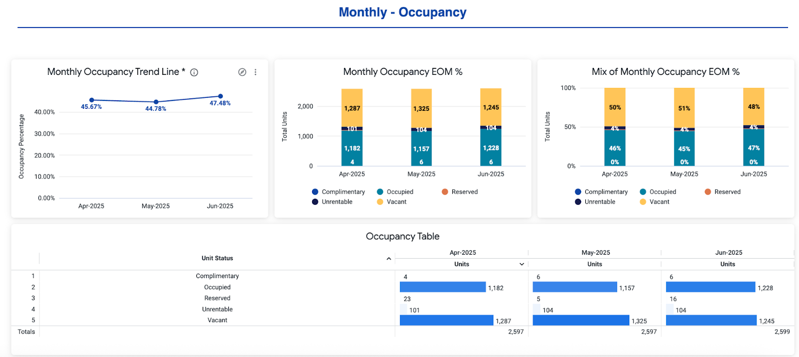 • Total Occupied + Complimentary Units: Total count of occupied + complimentary units.