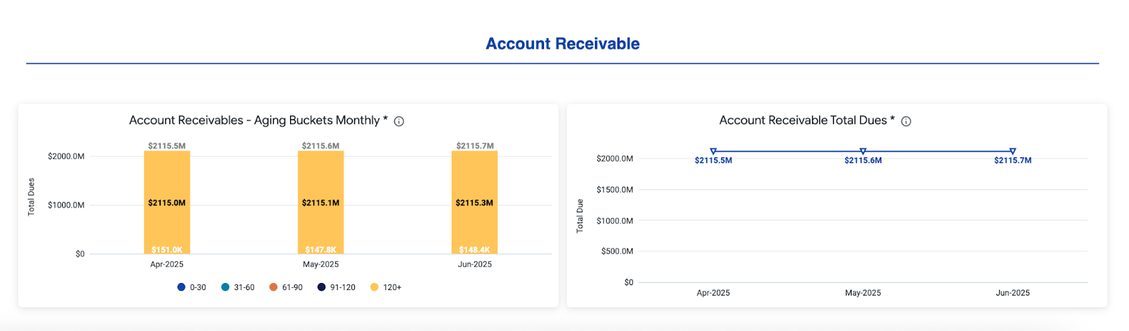 • Sum of Accounts Receivable: Total Accounts Receivable by time bucket.