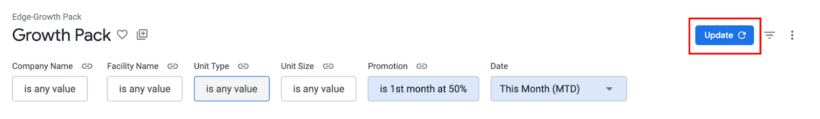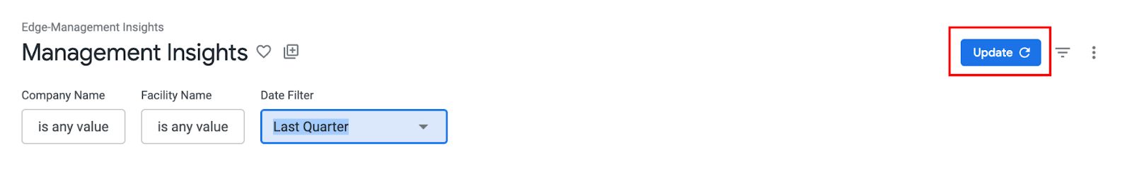 Click Update once your desired filter values are selected to refresh the dashboard.