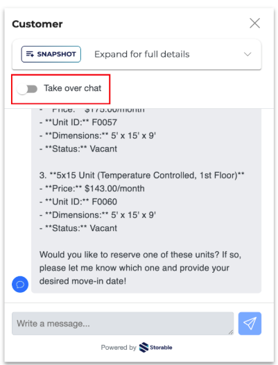 - Try the “Take over chat” toggle.