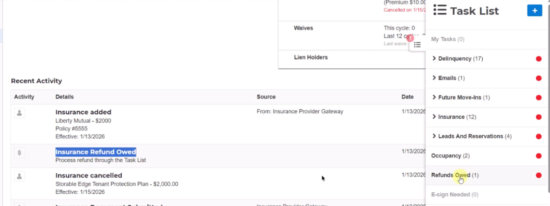 If a tenant cancels TPP coverage by submitting proof via the Proof Portal, and they have already made a payment for the TPP fee, you will see a task to approve the refund in the Corporate task list.